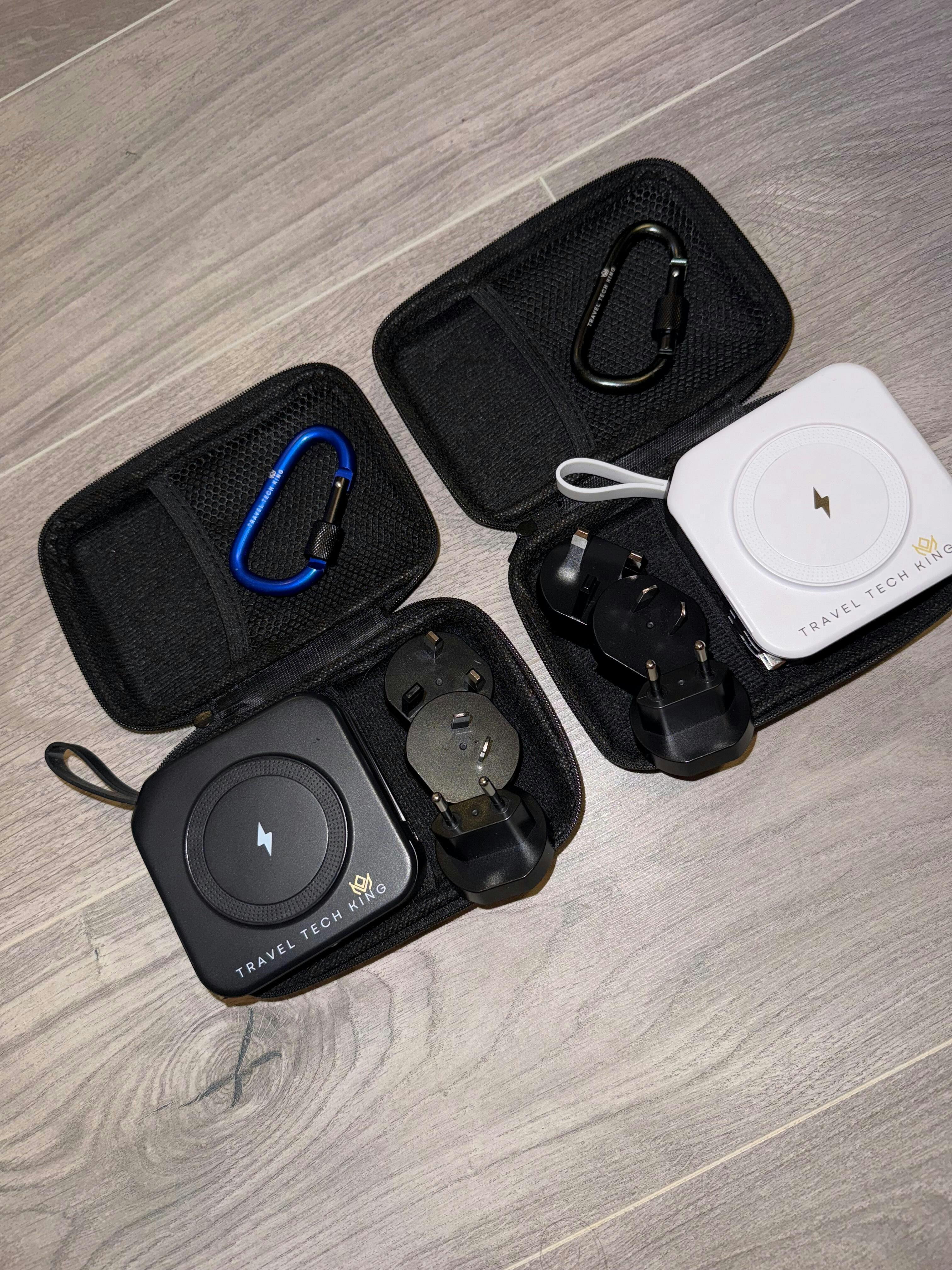 Never get caught with a flat battery again. The Global Charge 5-in-1 Travel Powerbank is your all-in-one charging solution, combining a wall charger, wireless pad, power bank, built-in cables, and global plug adapters into one sleek device. With a powerful 10,000mAh capacity and fast-charging technology, it keeps your phone, tablet, earbuds, and more ready wherever life takes you, from long flights to busy workdays. Packaged in a compact travel case and complete with a free carabiner clip, it’s built for convenience.